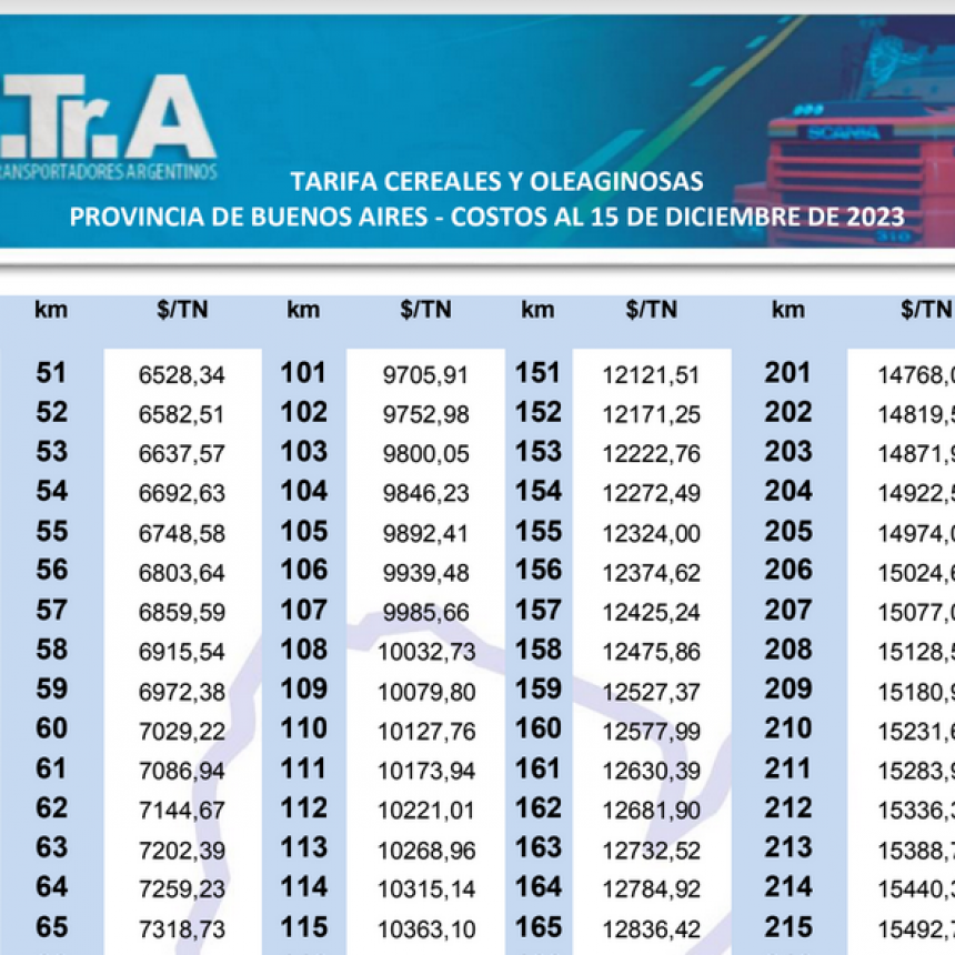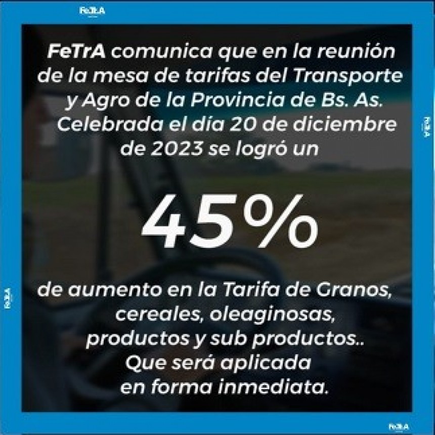 45 % de Aumento en La Tarifa para Granos y Cereales de la Provincia de Buenos Aires.