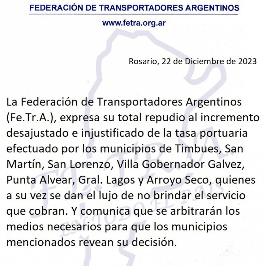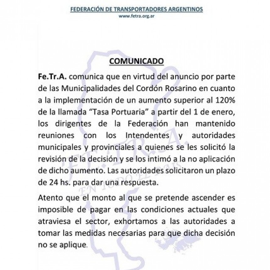 Claudio Enri y Edgardo Maurenzi por la federación son recibidos por la Señora Vicepresidente Comunal, integrante de la comisión comunal y asesor legal, a quienes les planteamos que la implementación de un aumento superior al 120 % de la Tasa Portuaria a partir del 1 de enero es imposible de pagar dada las condiciones actuales por las que atraviesa el sector, por lo que solicitamos que dicha decisión no se aplique. Las autoridades solicitaron un plazo de 24 hs pra dar una respuesta.
