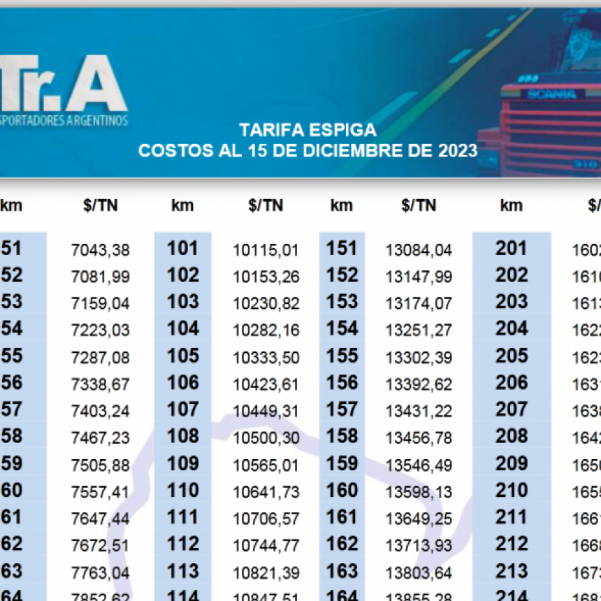 TARIFA BUENOS AIRES CEREALES DICIEMBRE 2023