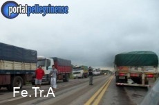 Los transportistas de la localidad de Cañada Rosquin se manifiestan en las banquinas de las rutas 34 y 66. Foto PortalPellegrinense.