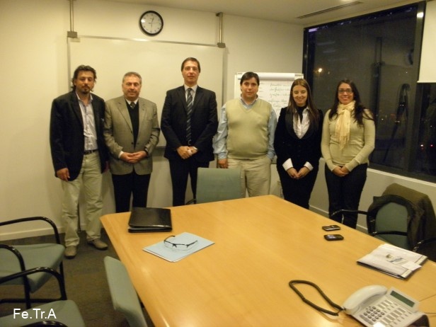 Los dirigentes de Fe.Tr.A Sr. Pablo Agolanti, Sr. Edgardo Maurenzi, acompañados por la Dra. Valeria Pardo Asesora Legal y Cdra. María Costansi celebraron una importante reunión con directivos de Mercedes Benz Argentina Ing. Alfredo Zielinski Senior Manager y Sr. Daniel Di Iorio Gerente Zonal Ventas Camiones, con quienes se analizo aspectos del Plan recambio de flota lanzado por la Sra. Presidenta de La Nación Argentina y el estado de avance en la instrumentación del mismo por parte de la empresa.