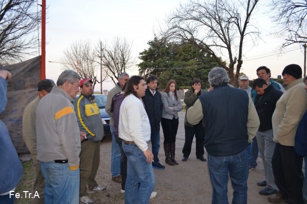Las autoridades de Fe.Tr.A y el representante de los transportistas comentan el resultado de la reunión mantenida con los representantes de la Empresa Gaviglio.