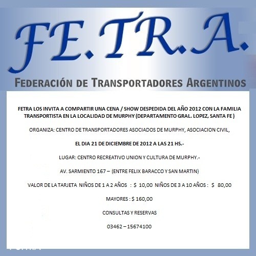 Invitamos a los centros adheridos a la Federación y por su intermedio a los transportistas a concurrir a la cena donde podremos compartir y comentar los resultados del importante trabajo realizado por la Federación.
