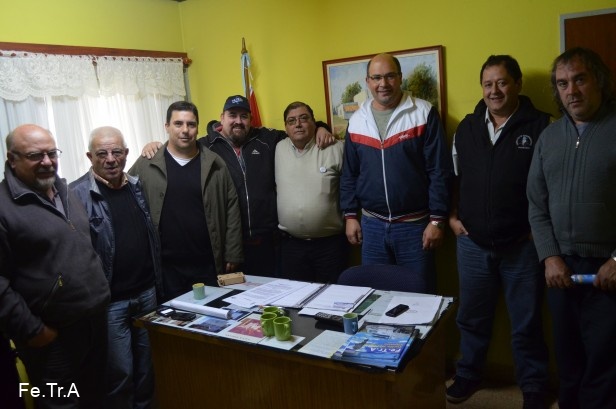 Los dirigentes de Fe.Tr.A, Ovidio Rodriguez, Pablo Agolanti, y Fabian Bermudez, junto a los transportistas del TRA Firmat y TRA Miguel Torres se reunieron con el Sr. Gutavo Piccirili presidente Comunal de la localidad de Miguel Torres.