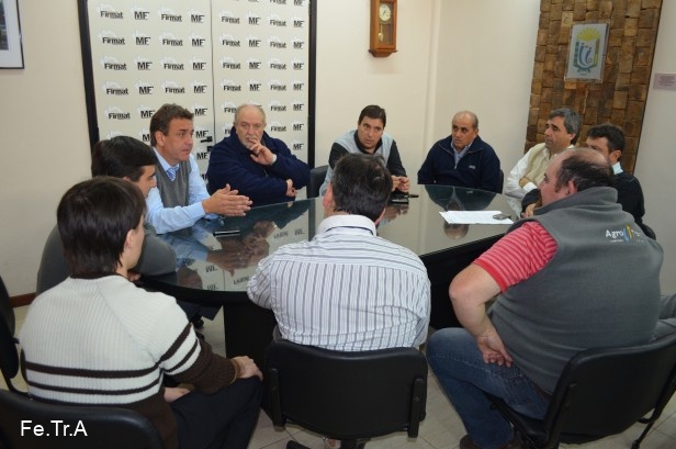 Los presidentes de ambas instituciones (Digregorio Jorge Presidente TRA Miguel Torres y Tano Gabriel presidente TRA Firmat) y transportistas, junto a los dirigentes de Fe.Tr.A Pablo Agolanti y Edgardo Maurenzi se reunen con el Intendente de la ciudad de Firmat Sr. Fabio L. Maximino, Cdor. Gabriel Gribarelo presidente del Consejo, concejal Danilo Gaziera y Secretario de Hacienda Diego Bullorini. los transportistas y los dirigentes de la federación explican los motivos que llevaron al reclamo y enumeran las diversas instancias de dialogo que se mantuvieron con el gerente de AFA Sr. Moyano, sin tener respuestas hasta el momento, dejando aclarado que el Sr. presidente Comunal de Miguel Torres ofrece el ambito de la comuna local para realizar cualquier tipo de reunión y trabajar para destrabar la situación.
