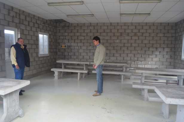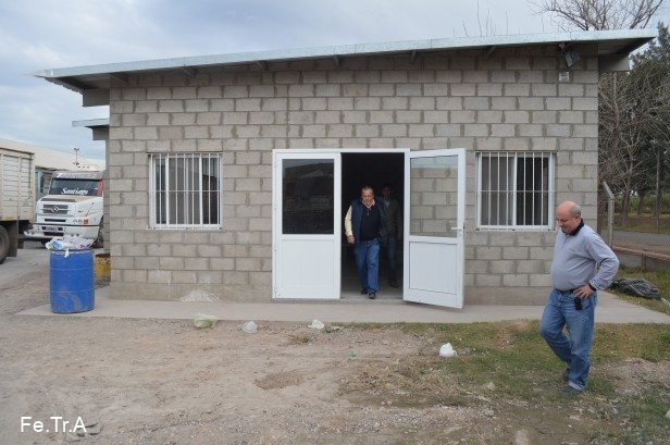 Ariel Mascanfroni secretario y Milton Santangelo por la Federación de transporte, recorrieron las instalaciones de baños y comedor de Playa Vicentin acompañados por el responsable de logística de la empresa.