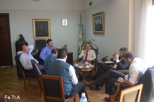 Ovidio Rodriguez Presidente de fe.Tr.A acompañado por Pablo Agolanti vicepresidente, Edgardo Maurenzi tesorero y Miguel Bettili delegado provincia de Bs As, se reunieron con Edgardo Colombini Subsecretario de Transporte de la Nación, Leopoldo Jozami Director de Cargas y Daniel Dominguez Jefe de gabinete de la subsecretaria de transporte