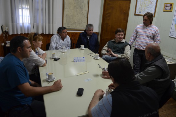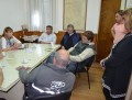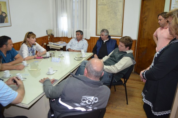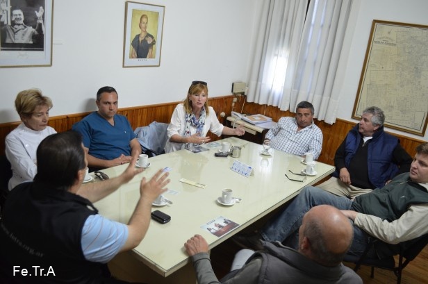 La presidenta del Honorable Concejo Deliberante Ana Laffont junto a los Concejales; Emmanuel Gemelli, Ana Giasetti, Silvia Sette, Leandro Madera y Marcos Rosenzuarg Secretario Legislativo se reunen con los transportistas y dirigentes de Fe.Tr.A y escuchan los motivos que los llevaron al reclamo, el no cobro de la tarifa, falta de trabajo (no les dan viajes) y prioridad de carga a los transportistas locales, como así también piden por contar con una playa de estacionamiento para los camiones.