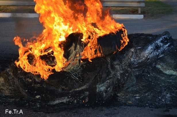 Los transportistas nucleados en el centro y adheridos a Fe.Tr.A reclaman frente a la planta de Acopio en demanda de distribución equitativa de cargas y respeto de la tarifa nacional.