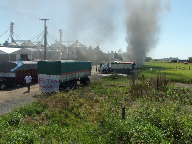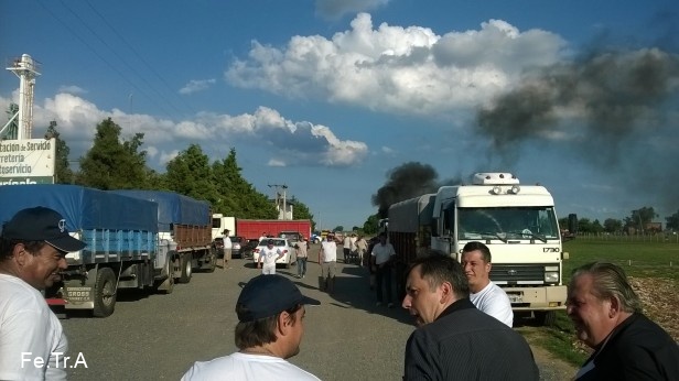 Distribución equitativa de las cargas y tarifa digna. Los transportistas son acompañados por los dirigentes de Fe.Tr.A Edgardo Maurenzi y Ariel Mascanfroni.