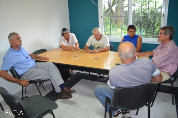 Presidente de la entidad junto a integrantes de la comisión directiva acompañados por Claudio Enri Secretario Gremial de Fe.Tr.A se reúnen con responsable de la planta de Acopio de Compañía Argentina de Granos.
