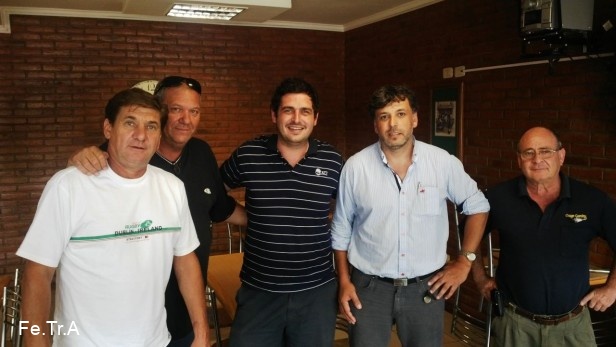 Los transportistas representados por Ricardo Lingia, Norberto Savio y Daniel Sanchez, acompañados por Edgardo Maurenzi dirigente de Fe.Tr.A son recibidos por el gerente de ACA Sr. Mendez.