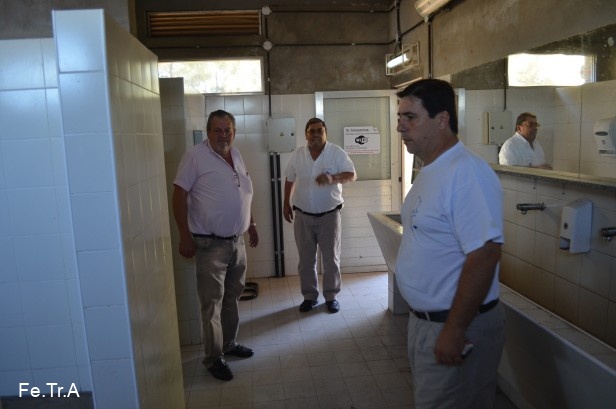 Ovidio Rodriguez presidente, Pablo Agolanti Vicepresidente y Ariel Mascanfroni secretario, visitan la playa de Molinos, se reúnen con transportistas y empleados de la empresa.