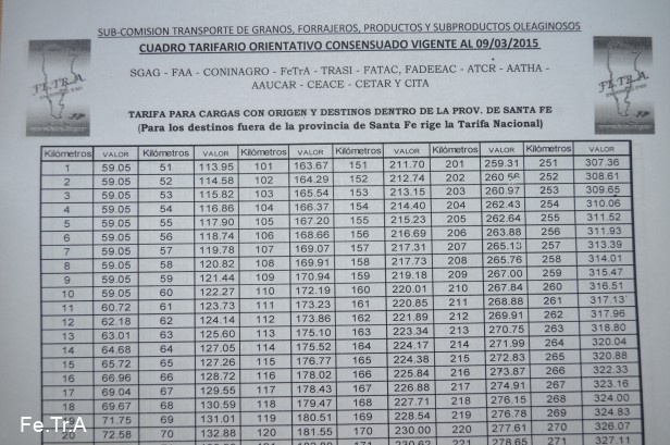 Tarifa para cargas de cereales con origen y destino en la provincia de Santa Fe (TARIFA COMPLETA INGRESANDO A SECCIÓN TARIFA).
