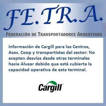 No acepten desvíos desde otras terminales hacia Alvear debido que está cubierta la capacidad operativa de esta terminal.