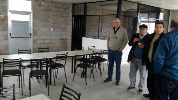 Ovidio Rodriguez presidente, Pablo Agolanti vicepresidente, Ariel Mascanfroni Secretario y Claudio Enri Secretario Gremial presentes en Playa T6 (recorren baños y comedor).