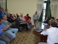 Los transportistas adheridos son acompañados por Claudio Enri Secretario Gremial, Ariel Mascanfroni Secretario y Martín Pardo asesor durante la reunión organizada en la Municipalidad junto a las demás cámaras para encontrar una respuesta a la falta de equidad en la distribución del trabajo por parte de los Acopiadores y Productores dadores de carga.
