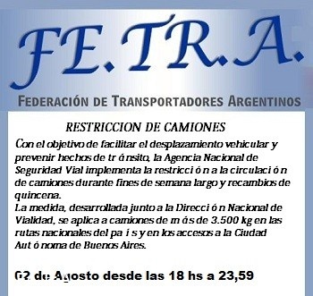 RESTRICCIÓN A LA CIRCULACIÓN DE CAMIONES.