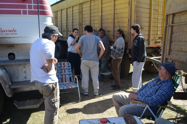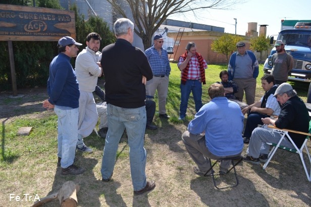 Los dirigentes de Fe.Tr.A Pablo Agolanti y Claudio Enri se reúnen con los transportistas de la localidad. Dirigentes del TRA Carmen acompañan el reclamo.