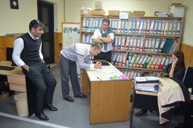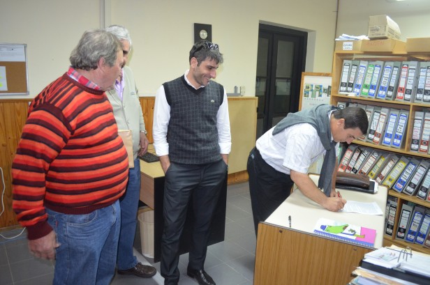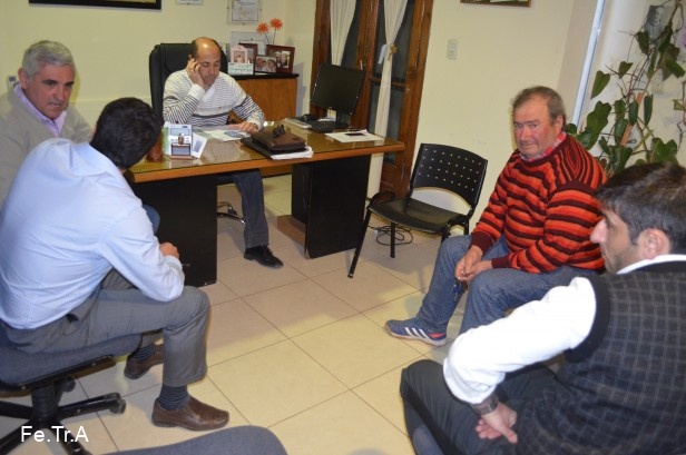 Autoridades del Centro de Trasportistas, Fe.Tr.A, presidente comunal, Asesor legal y Asesor Contable de Agro Cereales SRL se reúnen para dialogar.