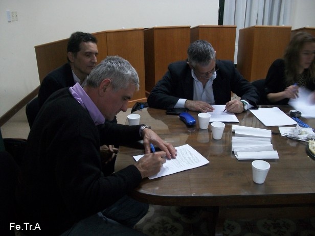Autoridades provinciales, Municipales Centro de Transportistas Unidos de Leones junto a Fe.Tr.A, cámaras, Acopiadores (dadores de carga) y Sociedad Rural firman importante acuerdo por distribución equitativa del trabajo.