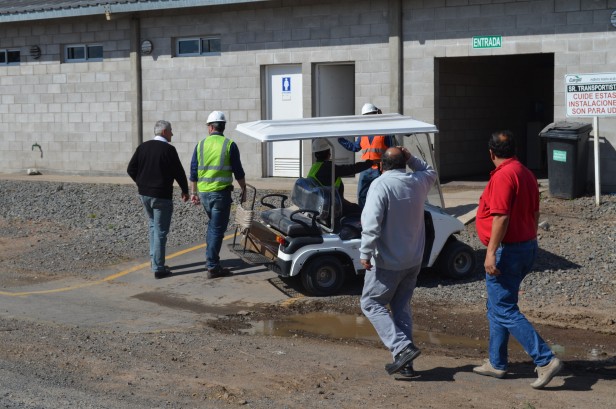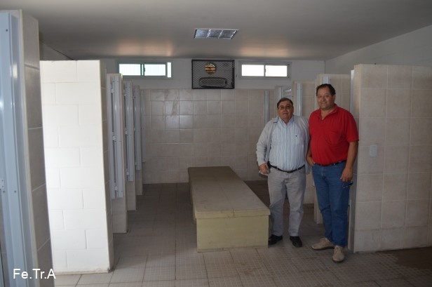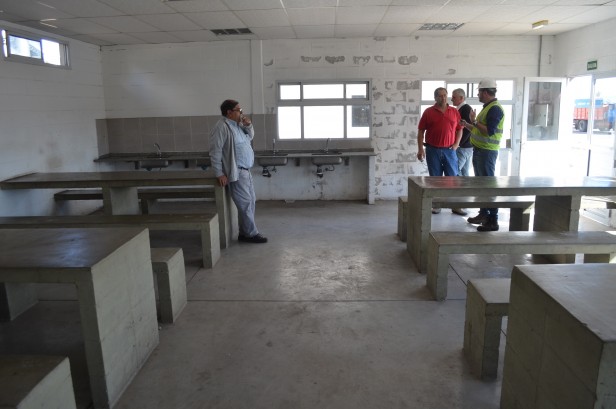 Ovidio Rodriguez presidente de la federación junto a Claudio Enri secretario gremial y Fabian Bermudez Sub delegado gremial prov. de Buenos Aires recorren playa, baños y comedor acompañados por directivo de Cargill.