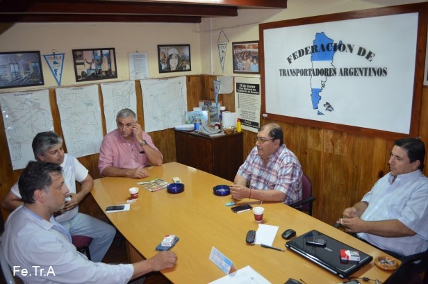 Hugo Alessio titular es recibido por el presidente de Fe.Tr.A Ovidio Rodriguez, Pablo Agolanti vice, Edgardo Maurenzi tesorero y Claudio Enri Secretario gremial.