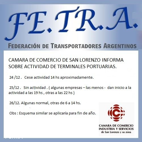Cámara de Comercio San Lorenzo informa sobre actividad portuaria.