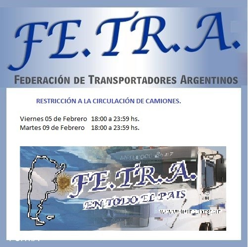 Los vehículos de las categorías N2, N3, O, O3 y O4 no podrán circular por la Ruta Nacional N° 9 desde el km 85. hasta el km. 142, desde las 15:00 hs. hasta las 23.59 hs. Quedan exceptuados de la medida: Transportes de leche cruda -sus productos derivados y envases asociados-, de animales vivos, de productos frutihortícolas en tránsito, exclusivos de prensa y unidades móviles de medios de comunicación audiovisuales, de atención de emergencias, de asistencia de vehículos averiados o accidentados, cisterna de traslado de combustibles, de Gas Natural Comprimido y Gas Licuado de Petróleo, de transporte de gases necesarios para el funcionamiento de centros sanitarios, de transporte de medicinas y de transporte a disposición final de residuos sólidos urbanos.