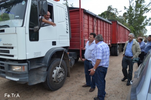 Dirigentes de la federación junto al intendente municipal, gerente de ACA y APSV atienden los reclamos de los transportistas.