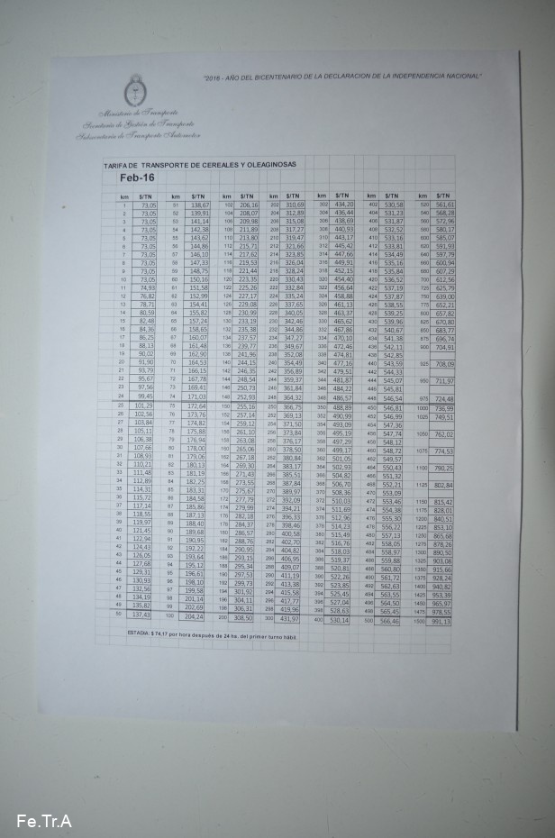 La Subsecretaria de Transporte de la Nación aprobó la nueva Tarifa Nacional para el transporte de Cereales.