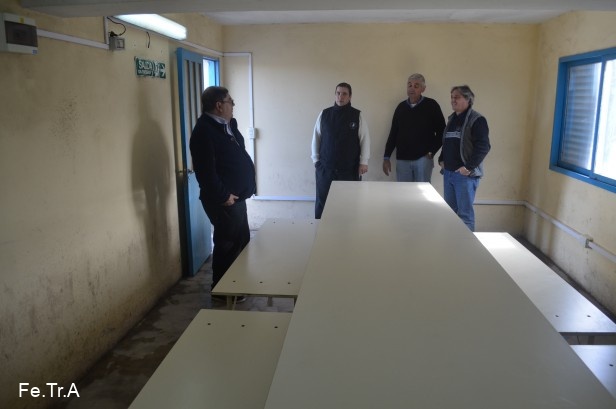 Ovidio Rodriguez presidente de la federación, Pablo Agolanti vicepresidente y Claudio Enri secretario gremial, acompañados por Rodriguez gerente de la empresa Servicios Portuarios,visitan las instalaciones.