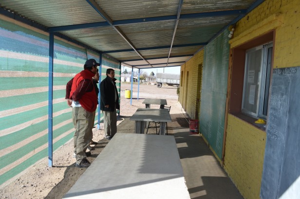 Pablo Agolanti por la federación junto a presidente de Tra Carmen recorren las instalaciones junto al responsable de logística de la institución.