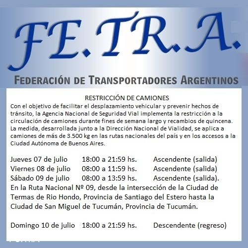 Restricción para la circulación de camiones los días 7, 8, 9 y 10 de Julio.