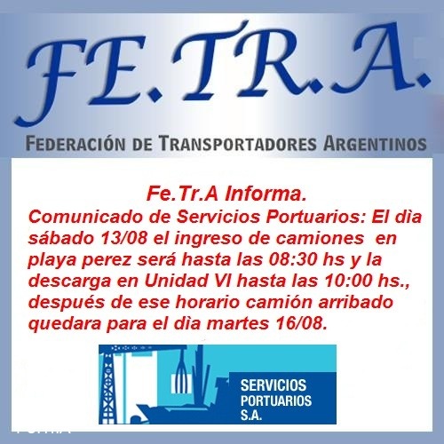 Fe.Tr.A informa Actividad Laboral en Los Puertos.