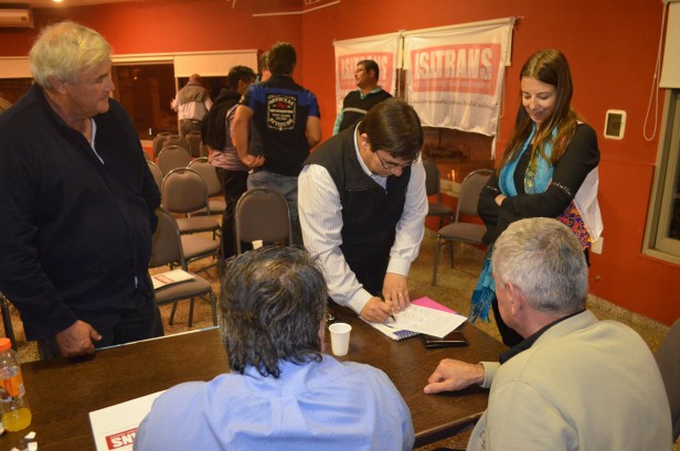Los dirigentes Pablo Agolanti, Edgardo Maurenzi, Claudio Enri y la asesora legal Valeria Pardo se reúnen con los transportistas Adheridos de las Ciudades y Localidades de Cañada Rosquin, San Martín de las Escobas, Galvez, Sastre, El Trebol, San Genaro y Las Rosas.