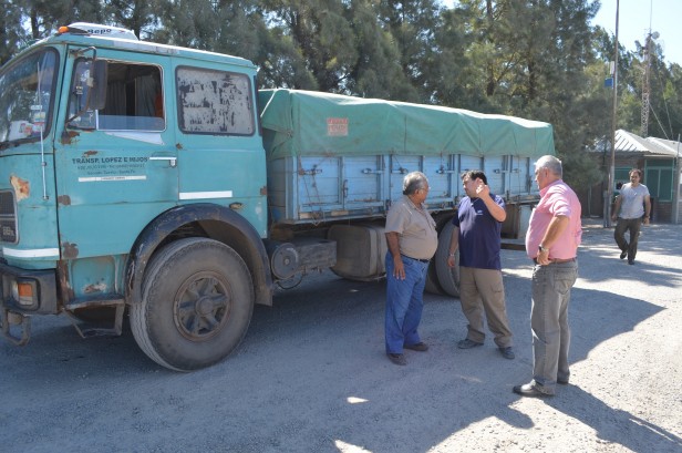 Claudio Enri secretario gremial y Ariel Mascanfroni secretario de la federación colaboran con transportista y recorren la playa.