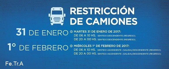 Restricción de camiones: Martes 31 de enero de 06 a 10 hs y de 20 a 00 hs.