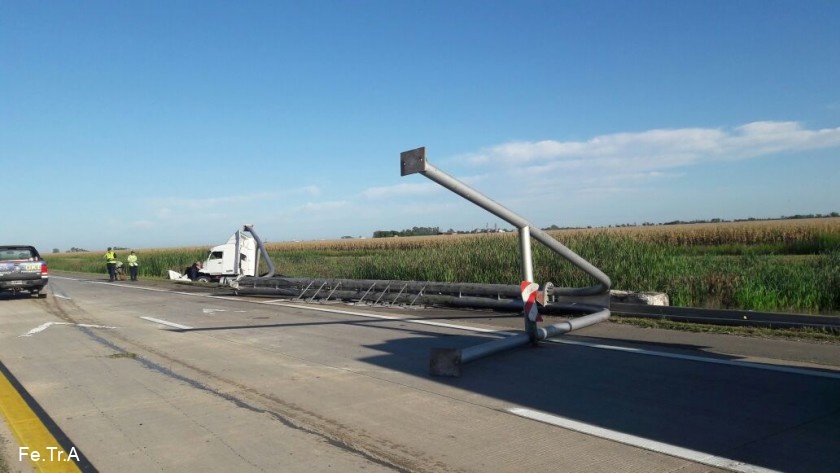 RN19🚦 km 92 sentido descendente, un siniestro e/ camiones provoca paso alternado La carterÃa dañada en el accidente queda sobre la calzada