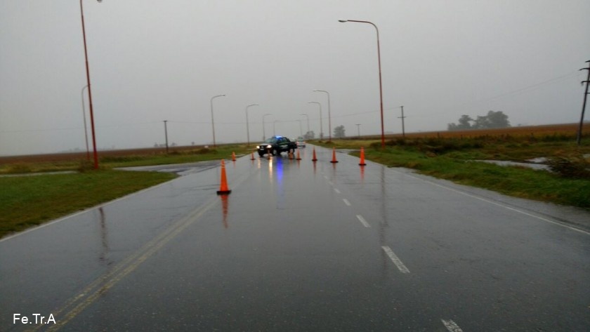 La Policía Vial de la provincia de Santa Fe, informó que debió cortarse al tránsito la ruta provincial 90 a la altura de la localidad de Melincué, debido al agua sobre la calzada como consecuencia de las lluvias (foto).