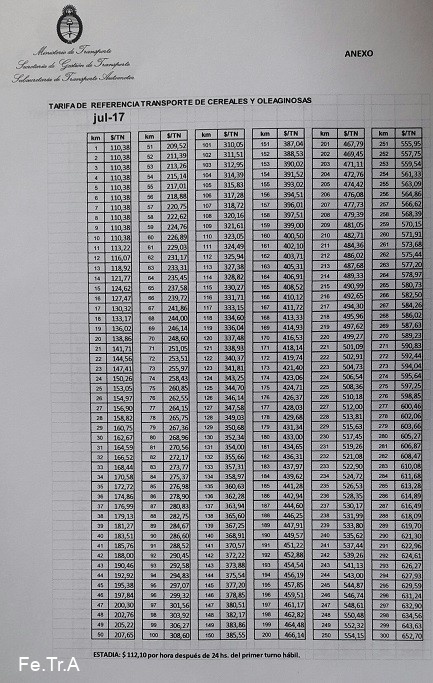 Hacer Click sobre la nota y ver PDF de la Tarifa Completa y Acta de la reunión mantenida con las entidades representantes del campo, cámaras y lo dicho por los dirigentes de Fe.Tr.A respecto al aumento de costo y pago a 30 días de los fletes.