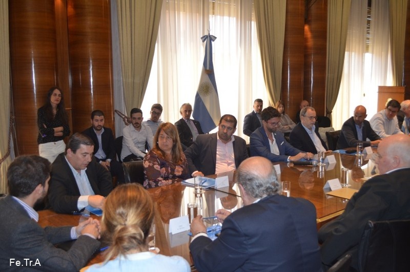 Más de 7 años de lucha de Fe.Tr.A se ven hoy concretados con la puesta en marcha del “SISTEMA DE TURNOS OBLIGATORIO PARA DESCARGA EN PUERTOS” (STOP) , con la firma por parte de los exportadores adhiriendo a dicho sitema, se da comienzo a la implementación del mismo.Con la presencia del Ministro de Transporte Guillermo Dietrich, Secretario de Transporte Guillermo Krantzer, Director Nacional de Carga Guillermo Campra, funcionarios del Ministerio de Seguridad,Por Fe.Tr.A se hicieron presente su vicepresidente Pablo Agolanti, tesorero Edgardo Maurenzi, Miguel Bettili consejero y Asesora Legal Valeria Pardo. Funcionarios de Puertos y Vías Navegables, del Ministerio de Transporte de la Prov. de Santa Fe, de la Bolsa de Cereales de Rosario entre otros.