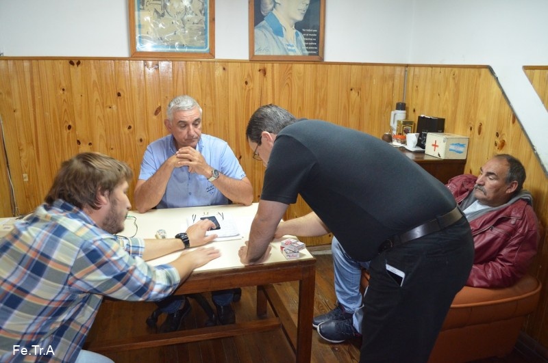 Guillermo Hegouaburu responsable de logística terrestre del molino Cañuelas se reúne con los dirigentes de la federación Claudio Enri Secretario gremial y Pablo Agolanti vicepresidente y representante del TRA Ricardone, para acordar la prestación del servicio de logística y aplicación de la tarifa nacional.