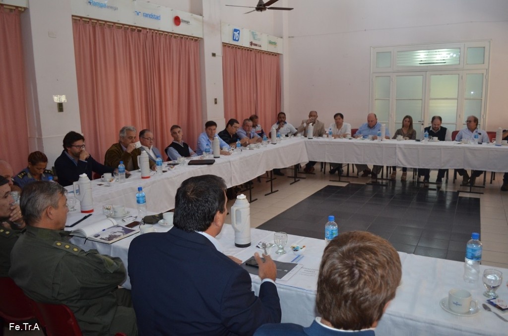 La nutrida reunión contó con la presencia de Guillermo Campra y Martín Culatto de los Ministerios de Transporte y Seguridad de la Nación respectivamente, quienes junto Pablo Jukic, Secretario de Transporte de la Provincia, presidieron la reunión y llevaron adelante la agenda de trabajo.