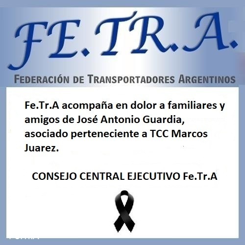 Fe.Tr.A acompaña en dolor ante irreparable perdida a familiares y amigos de José Antonio Guardia.