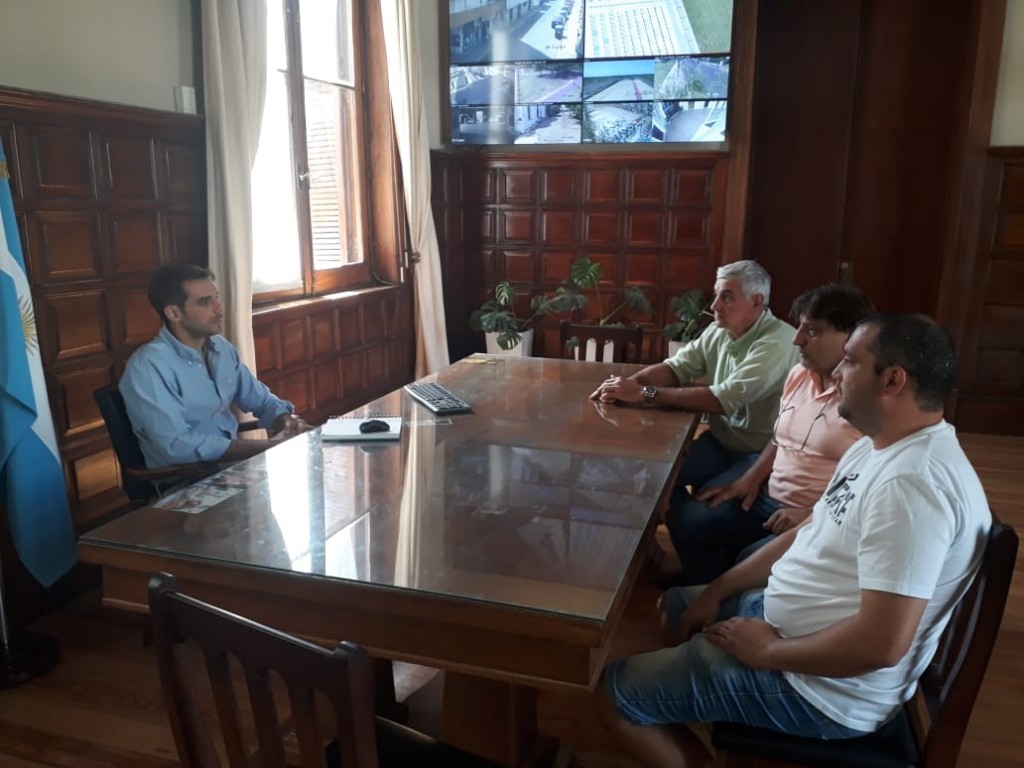 Los transportistas acompañados por Claudio Enri secretario gremial de la federación, se reúnen con el Intendente de San Nicolás para comentar sobre lo hablado con asesora legal de la cooperativa de Rojo sobre distribución de carga, y avanzar con la playa para camiones de la localidad.