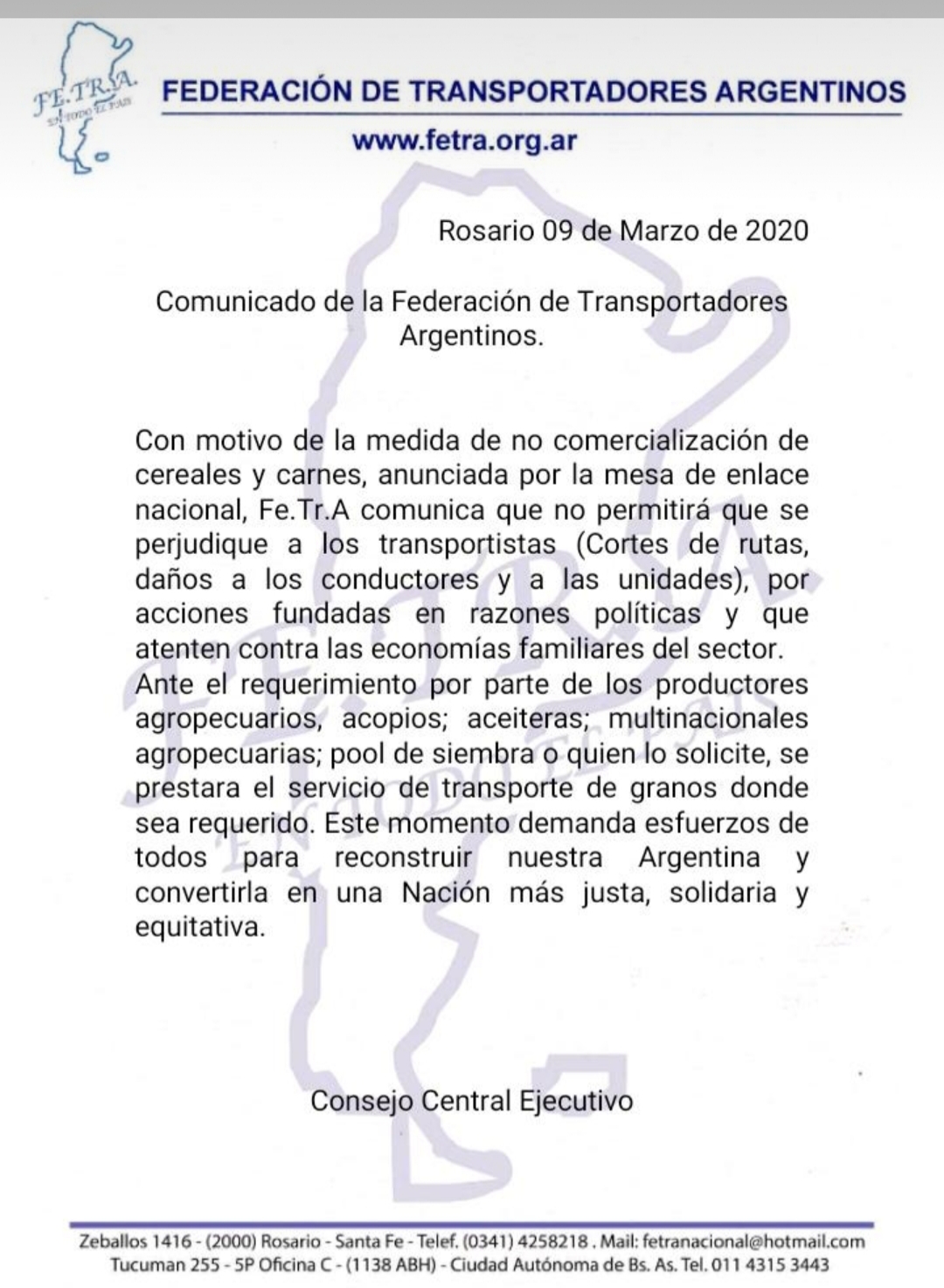 Con motivo del Paro de Comercialización lanzado por la mesa de enlace nacional.