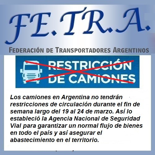 Se suspende restricción horaria a la circulación de Camiones durante próximo fin de semana largo.