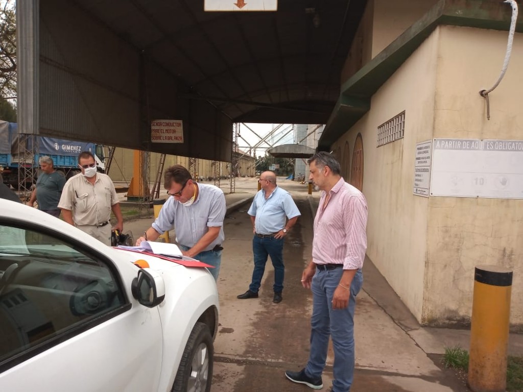 Visita a la planta de acopio de AFA Totoras por parte del consejero de fetra, verificación del cumplimiento del Protocolo de seguridad para la carga de cereales. Se recorren las instalaciones y se labra el acta correspondiente.