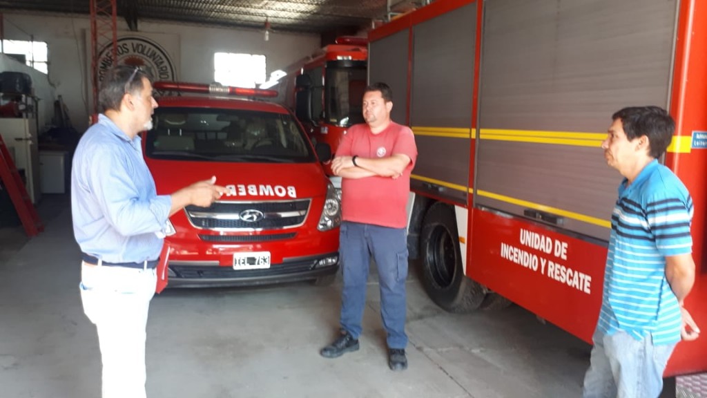 Dirigente de Fe.Tr.A y representante del Centro de Montes de Oca se reúnen con autoridad de bomberos.